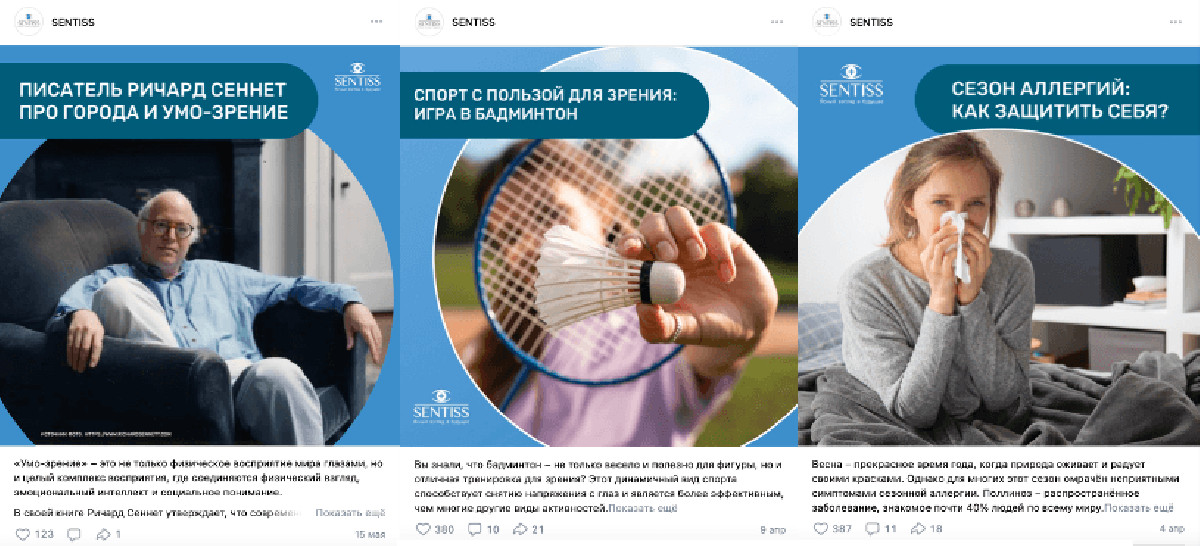 Для начала мы актуализировали рубрикатор: освещение новостей компании, отзывы на продукты, игры для тренировки зрения, поздравления не только с российскими праздниками, но и с индийскими, чтобы не забывать о корнях компании, а также знакомство с командой, интересные факты о зрении и другие вовлекающие форматы.