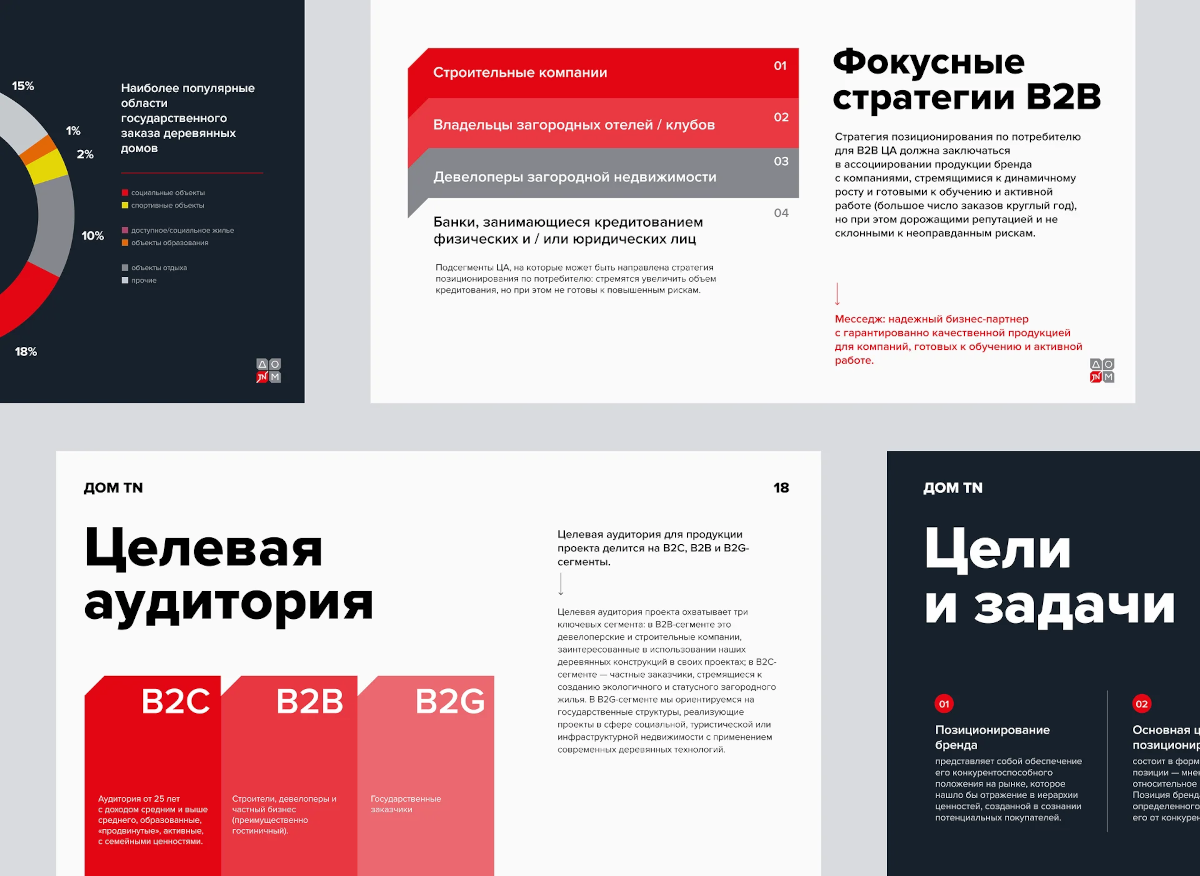 - Стратегия: философия, тональность (уверенный, экспертный), принципы коммуникации для B2C (более эмоциональной) и B2B (более рациональной).