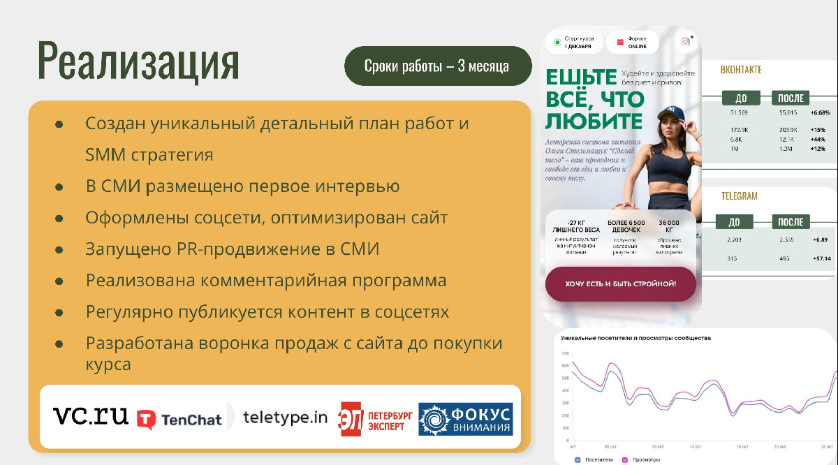 Успешное решение задачи «эксперт в узком кругу — узнаваемый бренд в нише» стало ключевым достижением проекта. Всего за 3 месяца системной работы был достигнут качественный прорыв.