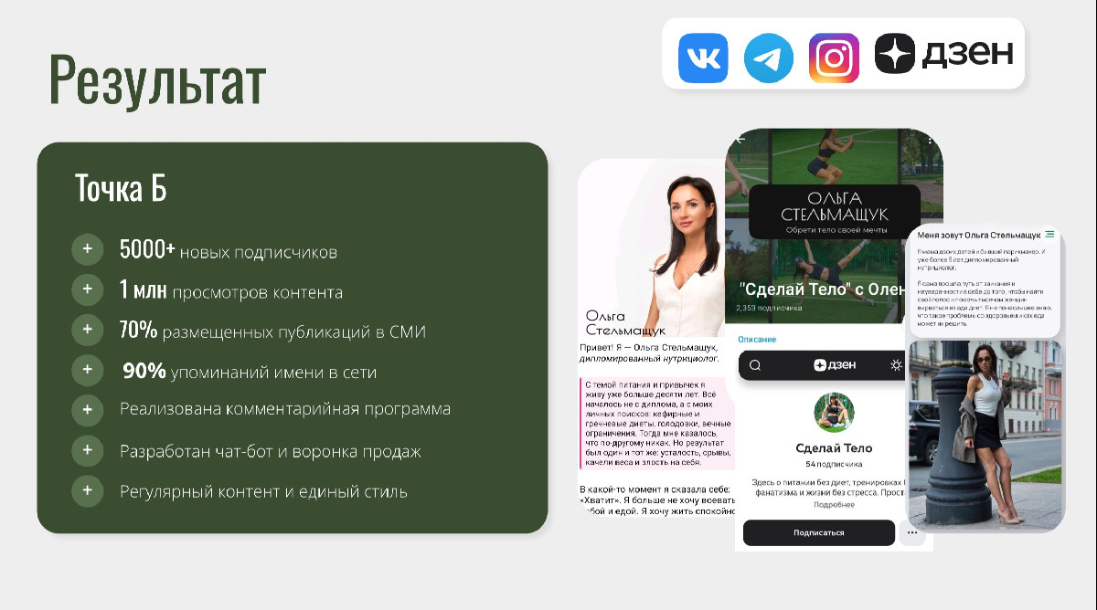 стория Ольги Стельмащук — это пример того, как можно преобразовать разрозненные активности в целостную стратегию, укрепляющую статус эксперта, формирующую преданное сообщество и приводящую к измеримым бизнес-результатам через запуск авторского продукта.