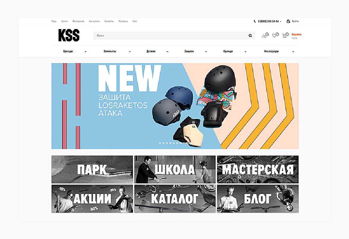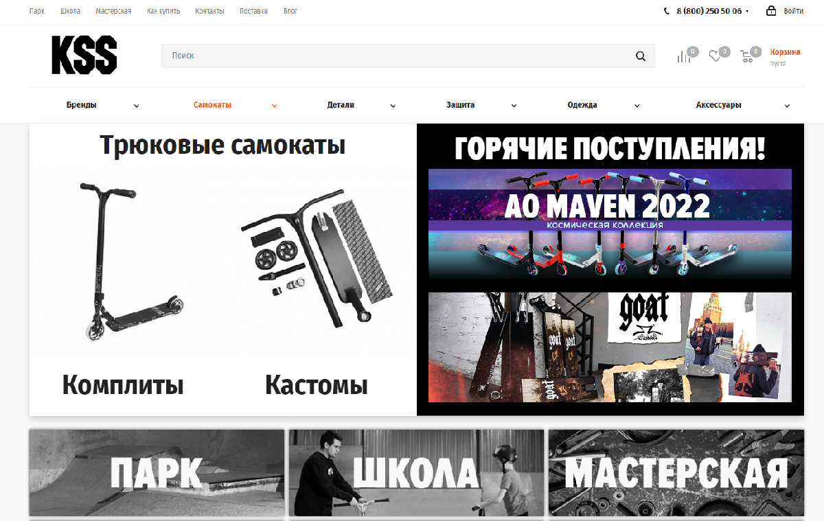 Заказчик: Магазин KSS — специализированный ритейлер товаров для трюкового самокатного спорта с двумя офлайн-точками