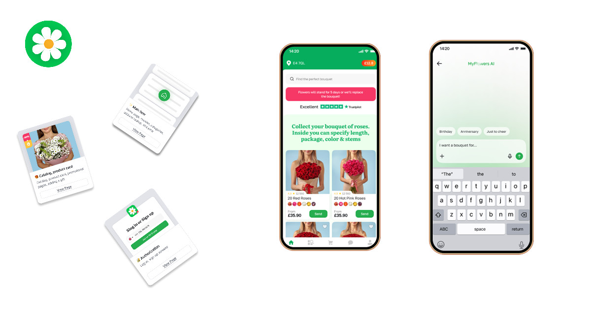 Помогли быстро развернуть бизнес по продаже цветов в Великобритании для MyFlowers, реализовав MVP мобильного приложения и запустив первый трафик за счет Agile-методологии и тесного взаимодействия с клиентом.