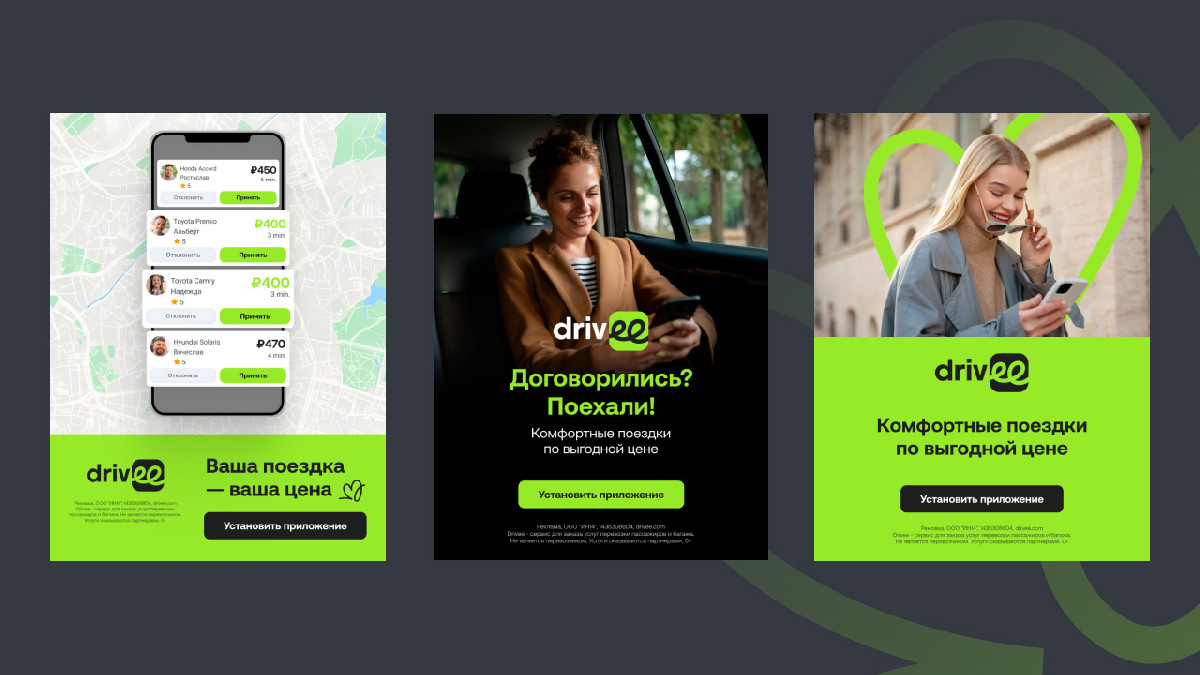 Drivee — российский сервис для заказа такси, работающий более чем в 100 городах страны. В приложении можно указать маршрут и цену, которую готов заплатить пользователь, а водителю решить — принимать заказ или предложить свою стоимость.