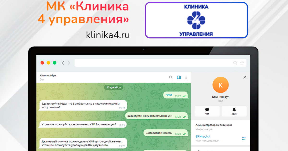 Не нужно долго ждать дозвона. Пишешь в Telegram, и за 10 сек отвечает бот. Психологический плюс к лояльности и доверию к медицинской клинике.