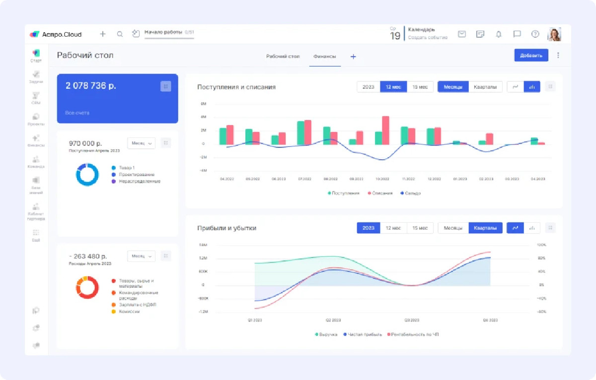 Аспро.Cloud оказался достаточно универсальным инструментом, способным закрыть не только задачи клиента, но и потребности самого консультанта. Система позволила объединить управление проектами, финансовый учет и CRM в одном месте, что было критически важно для достижения поставленных целей.