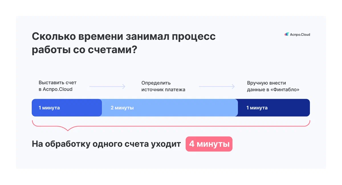 Первоначальное решение привело к еще большему усложнению процессов. В итоге компания работала с тремя системами одновременно: Аспро.Cloud для счетов и актов, сервис финучета для анализа показателей и потенциально 1С:Бухгалтерия для синхронизации.