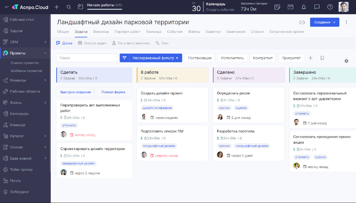 Особое внимание уделили настройке канбан-доски для управления задачами. Этот инструмент позволил руководителю в любой момент видеть, на каком этапе находится каждый проект, отслеживать статус отдельных задач и получать обратную связь по конкретным поручениям.