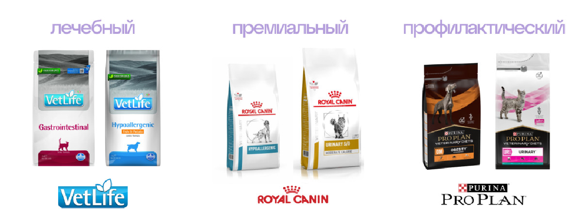 Лидерами продаж в категории лечебных кормов на маркетплейсе являются бренды ProPlan, Royal Canin и Vetlife, в их позиционировании подчёркивается доказанная эффективность, прозрачность составов и честность к потребителю.