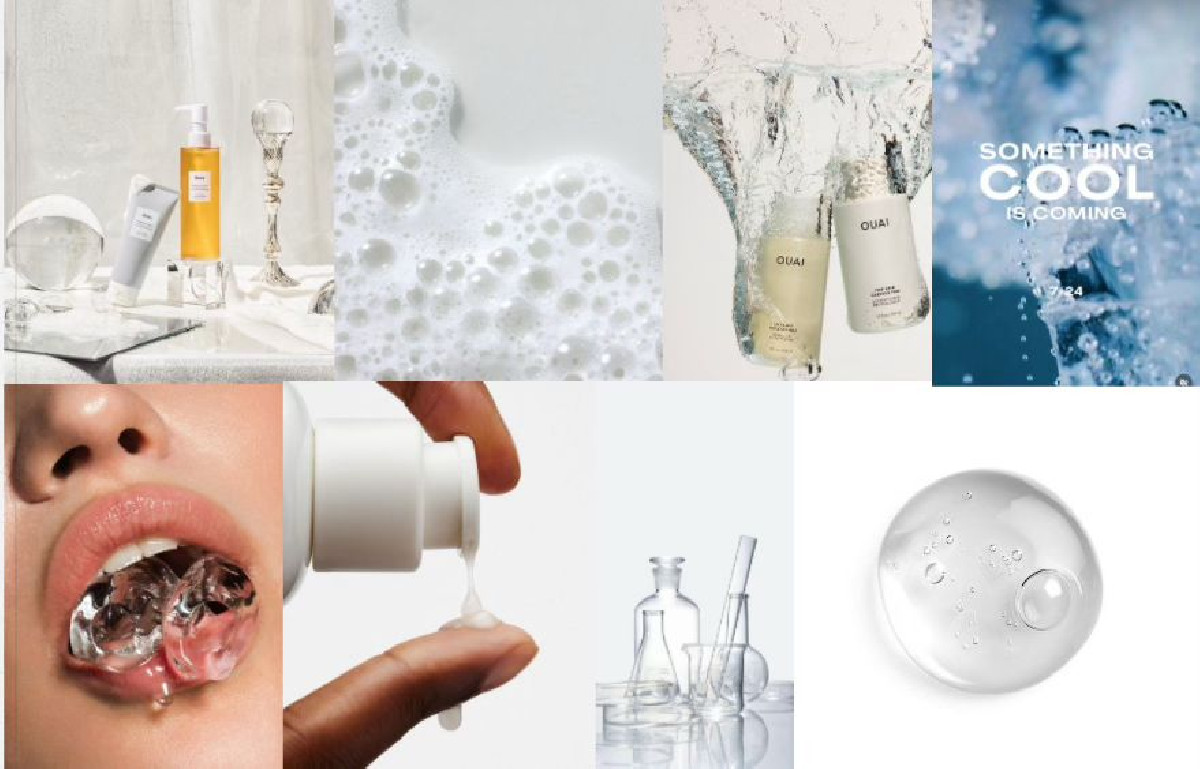Этот мудборд мы взяли за основу для ролика о мицеллярном лосьоне. Основной упор сделан на водные текстуры, такие как лед, пузыри и капли.