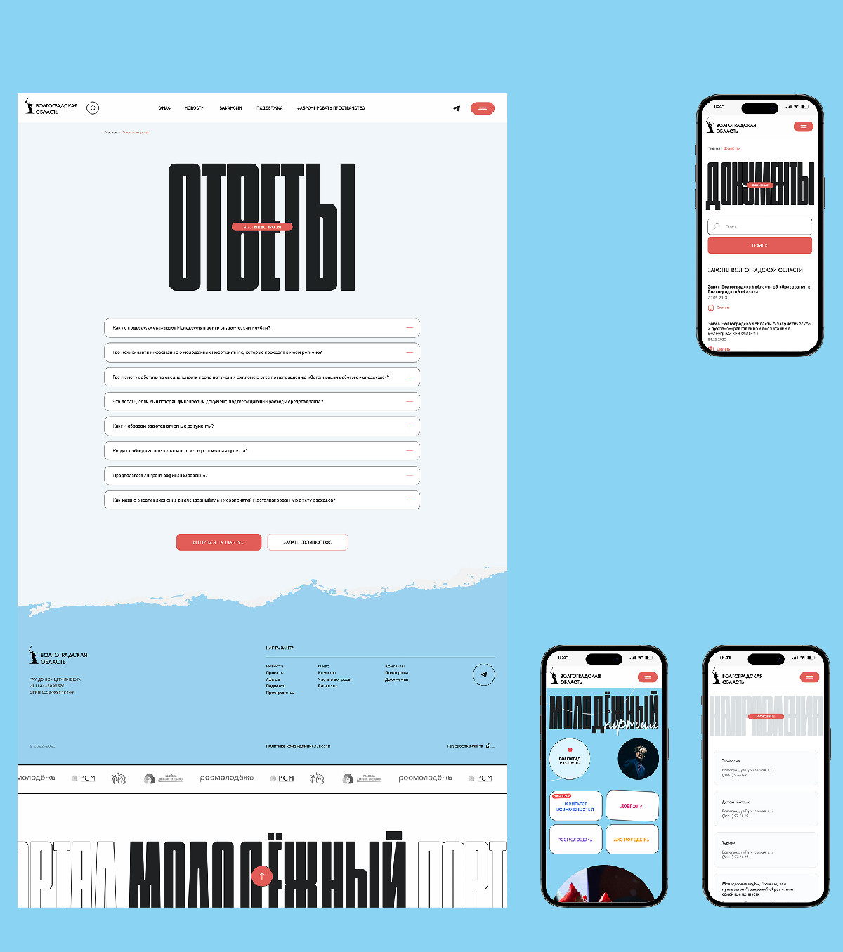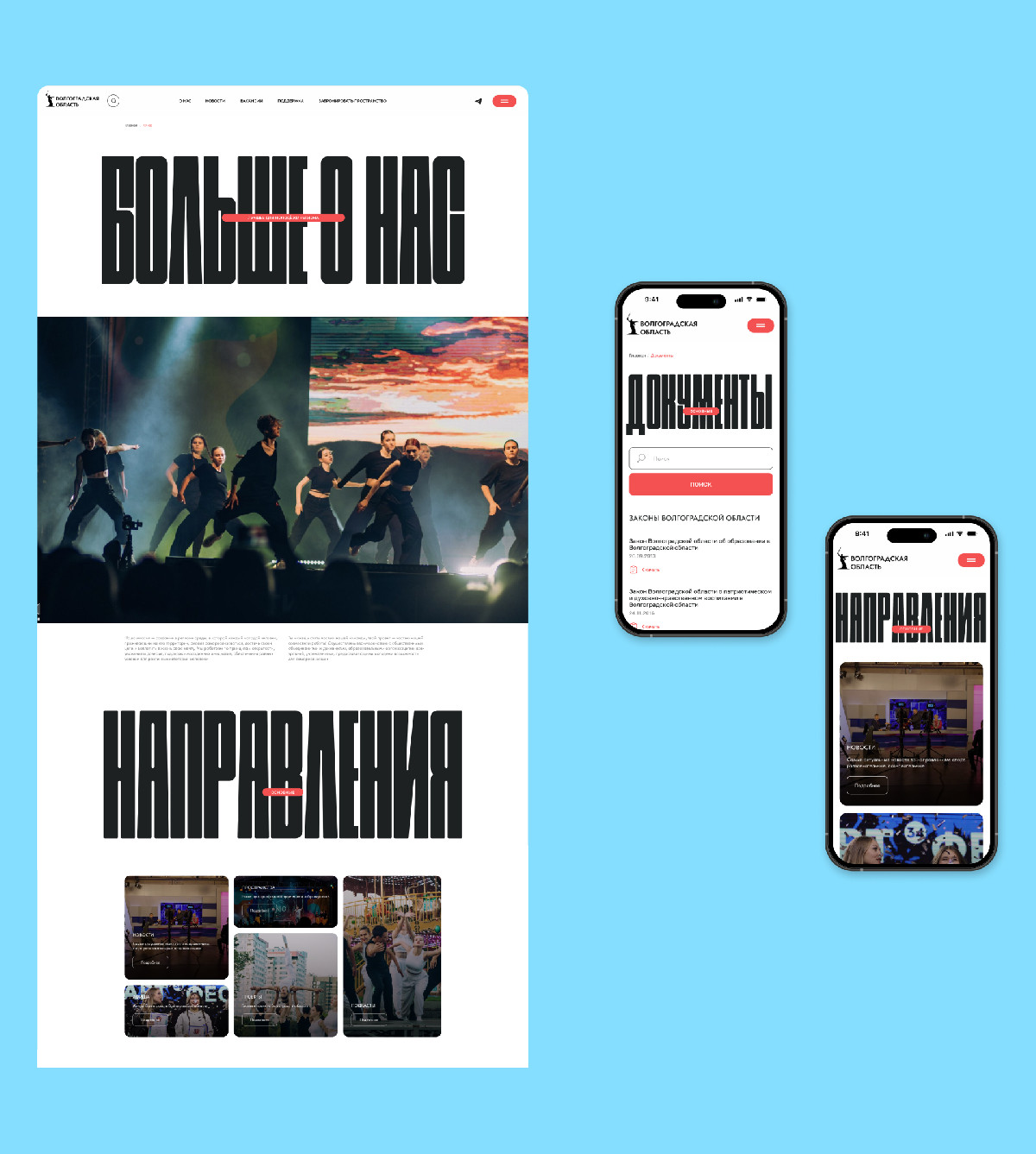 Каждый раздел портала стал полноценной историей. Мы собрали дух Волгограда — его динамику, энергию и амбиции — и перенесли их на сайт, добавив современную эстетику.