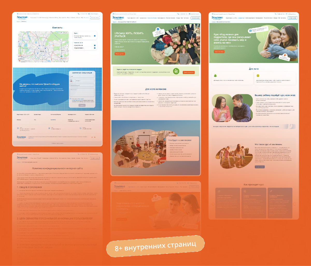 Образовательный проект пришёл к нам за сайтом для нового направления. Готового контента не было – только юридические документы и понимание, что нужен не шаблон, а живой, вдохновляющий сайт. Выстроили структуру, переписали документы в понятные тексты и оформили на конструкторе.