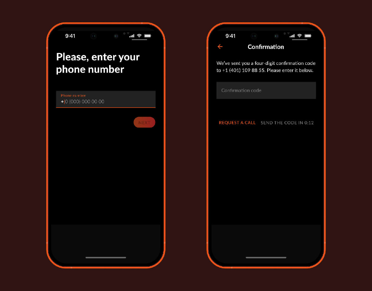Для приложения было важно обеспечить максимально простой, но при этом безопасный вход. Мы внедрили авторизацию по номеру телефона — привычный для пользователей способ. При первом входе человек указывает свой номер, получает одноразовый код подтверждения (через SMS или мессенджер), вводит его и сразу попадает в свой аккаунт. Такой подход исключает необходимость запоминать пароли и ускоряет процесс регистрации.