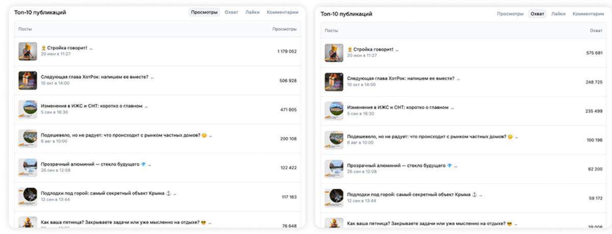 - Июнь 2025 — конкурс «Сделано в России — проверено вами» + пост-бомба 23 июня вышел «Словарь строительного сленга» — обычный полезный пост без рекламы. Результат: 1 170 000 просмотров, из них ~95 % виральные. Пост несколько дней висел в топе рекомендаций ВКонтакте.