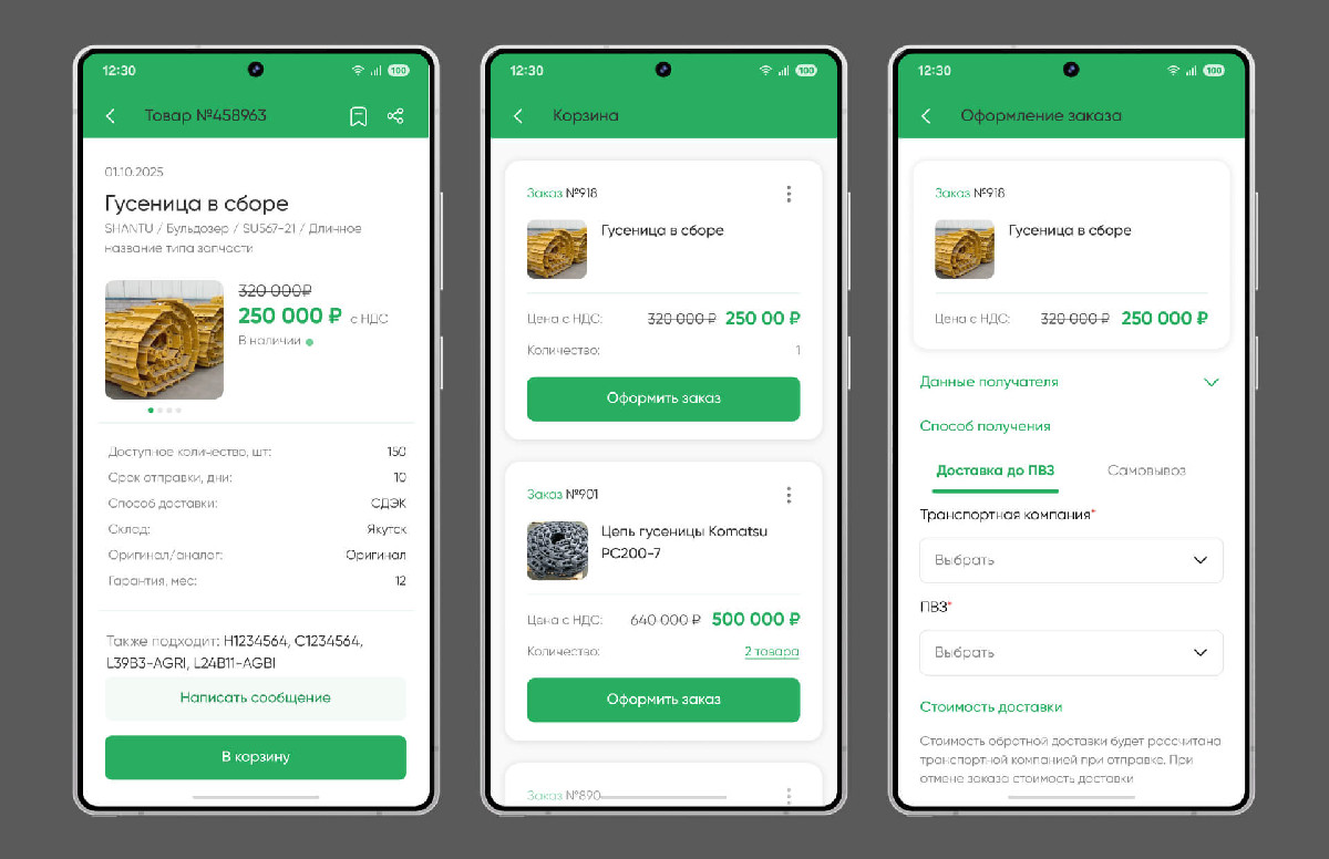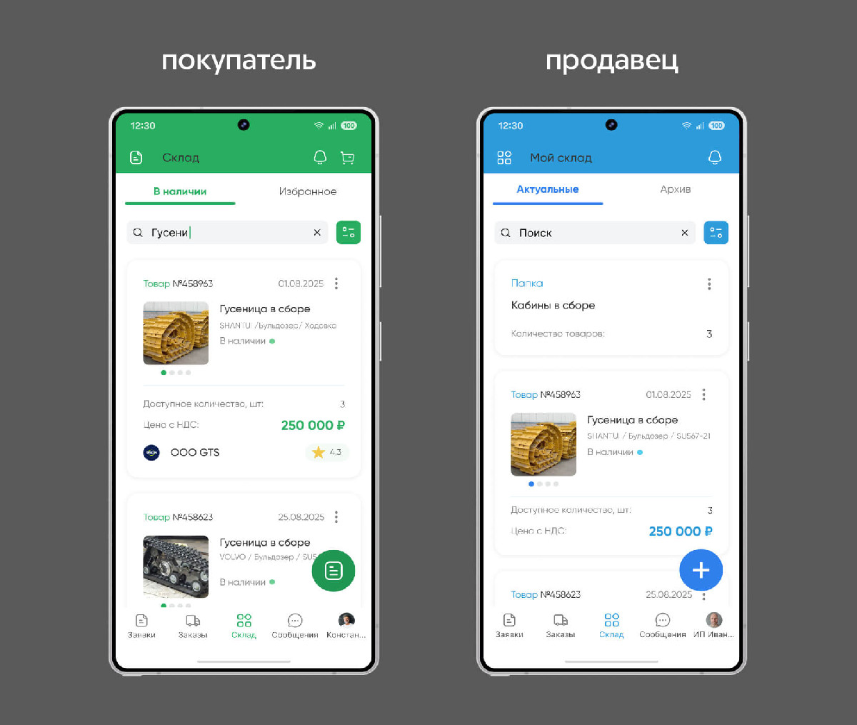 - Интерфейс под каждую роль: покупатели и продавцы видят разные кнопки, статусы и сценарии, что упрощает работу и снижает ошибки.