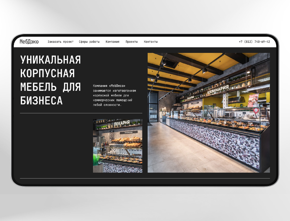 Разработанный лаконичный промо-сайт для «МебДеко» успешно решил поставленные бизнес-задачи в B2B-сегменте. Визуальная концепция, подчёркивающая эксклюзивность и качество craftsmanship, в сочетании с блоком реализованных проектов, эффективно презентует экспертизу компании. Функциональные элементы — онлайн-заявка с выбором услуги и CRM-интеграция — создали удобный и современный канал для коммуникации с клиентами. Данный подход привёл к достижению измеримых результатов: рост конверсии на 50% и увеличение времени на сайте на 25%. Таким образом, сайт стал ключевым инструментом для укрепления имиджа и увеличения количества качественных заявок.