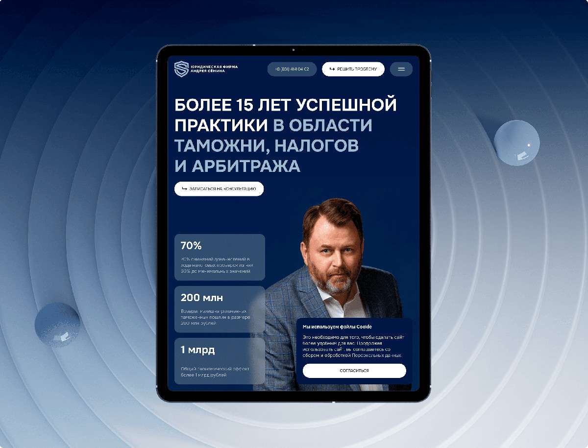 Лендинг-страница юридической фирмы Андрея Семина стала эффективным инструментом для привлечения клиентов и презентации услуг. Удобная система онлайн-заявок, подробная информация о преимуществах и отзывы повысили доверие клиентов. Сайт способствовал увеличению числа заявок и укреплению имиджа фирмы как надёжного партнёра в области таможенного, налогового права и арбитража.