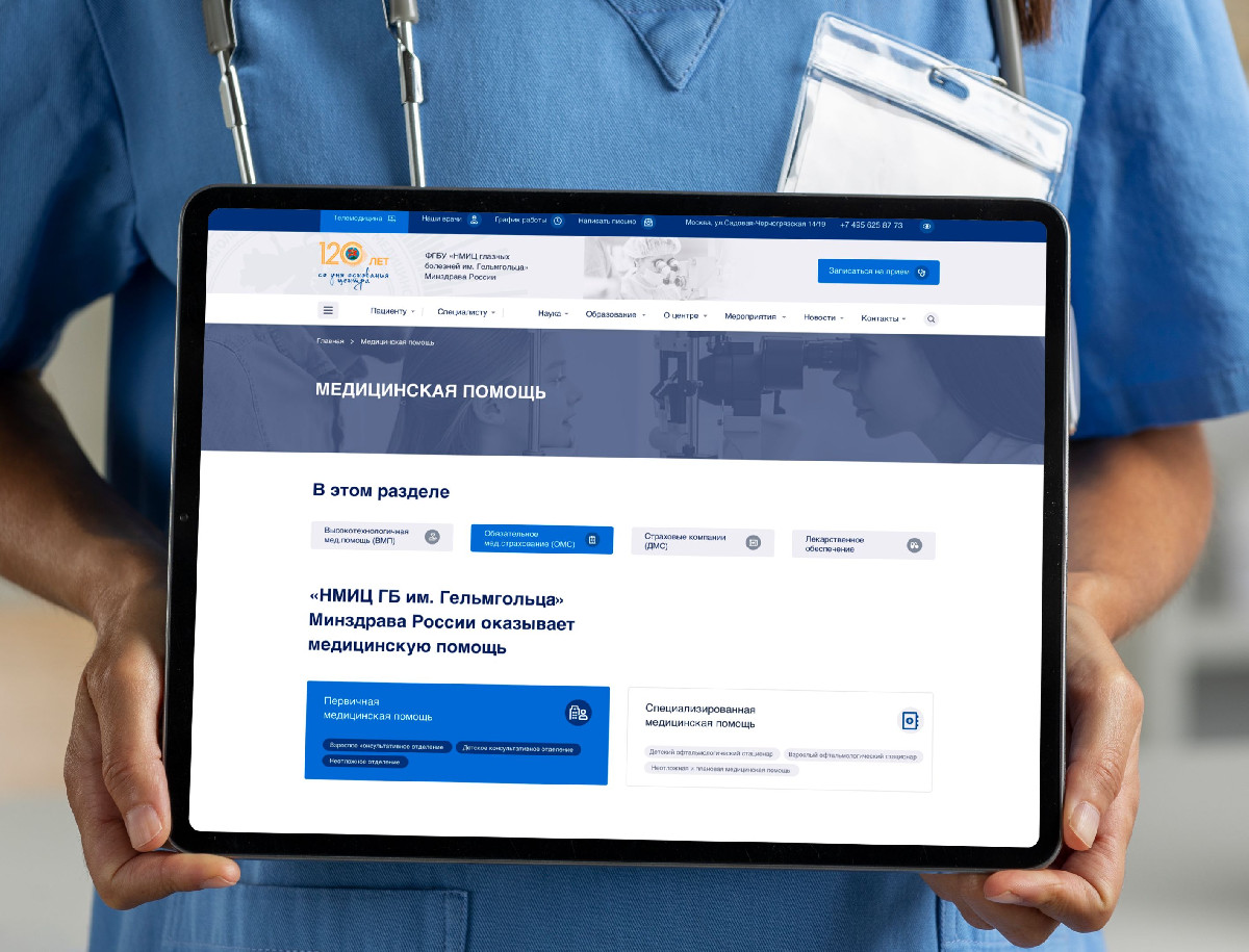 Мы создали современный сайт для НМИЦ ГБ им. Гельмгольца, который делает online взаимодействие простым и прозрачным. Новый дизайн и удобная структура усилили доверие пациентов и сделали сайт эффективным каналом информирования и записи на услуги.