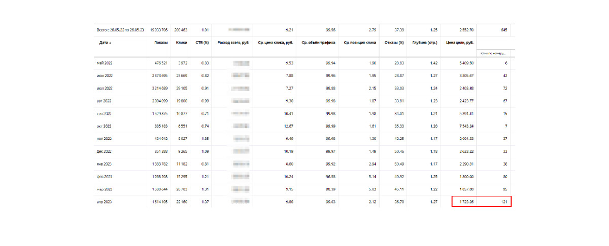 Для того чтобы добиться 2-х кратного увеличения чистой прибыли с рекламных кампаний работавших у клиента в данном случае не пришлось придумывать каких-то необычных стратегий и неординарных подходов к задаче. Хороший результат был достигнут только при помощи нашего базового видения того как должны выглядеть рекламные кампании любого из наших клиентов. Мы взяли то, что уже было настроено в рекламных кампаниях клиента и привели это к нашему "золотому" стандарту качественно настроенной рекламы. Это дало свои плоды и в уже течение первого месяца после оптимизации цена лида стала снижаться, а их количество сразу же начало расти.