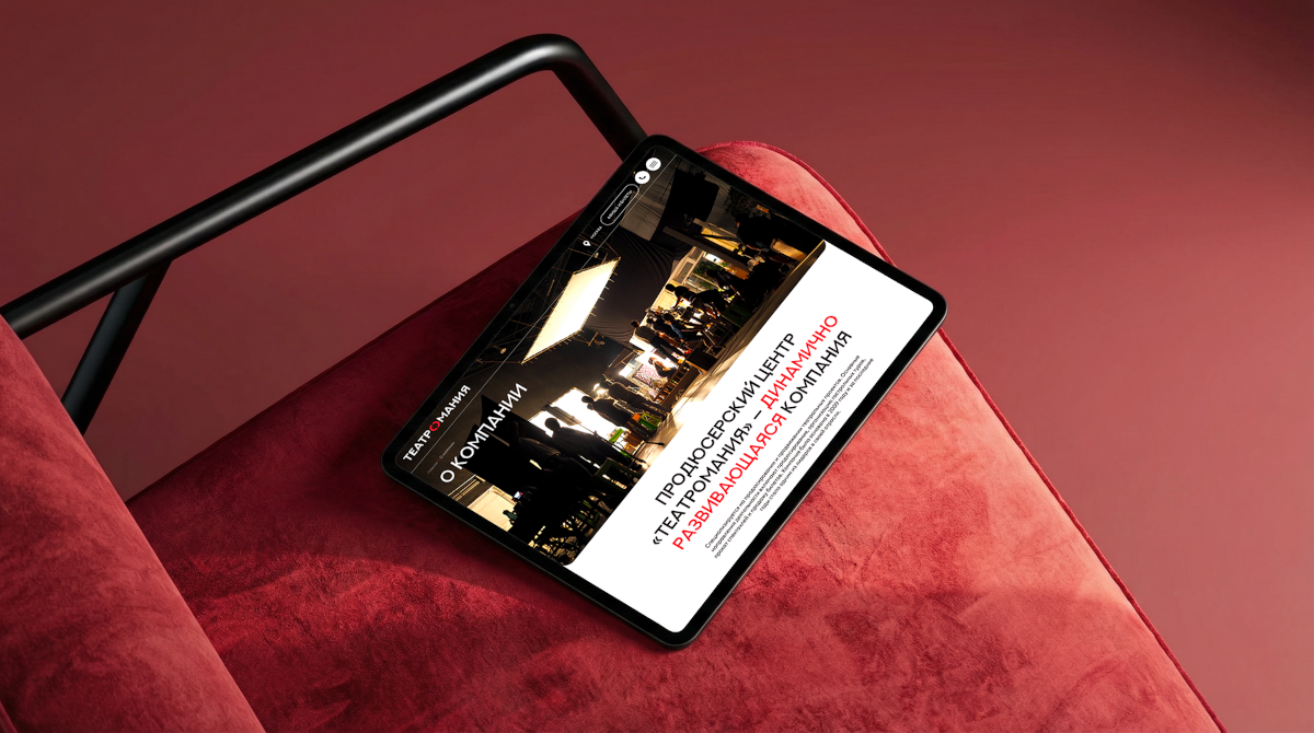 К нам обратились с комплексной задачей — обновить логотип и сайт «Театромании». Цель ребрендинга — создать современную и динамичную айдентику, которая уйдёт от шаблонных театральных клише и отразит многослойность, движение и «киношность» центра. Новый визуальный стиль должен передавать живой характер команды, подчёркивать их актуальный взгляд на театр и воплотить это в свежем, выразительном решении.