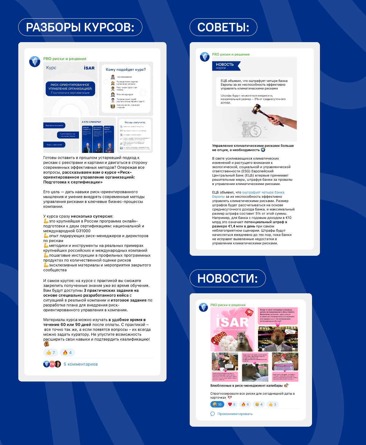 Команда ISAR была с нами на одной волне, поддерживала креатив и была «за» эксперименты. В совместной работе Teлеграм-канал стал площадкой, где риск-менеджмент перестал быть скучной теорией и превратился в понятную и практичную сферу.