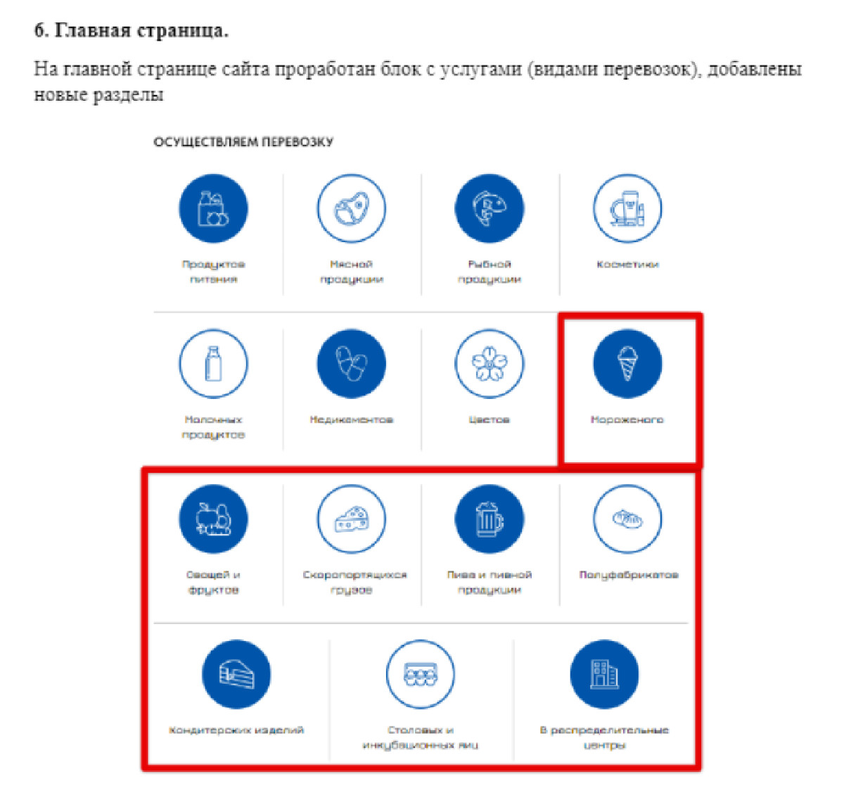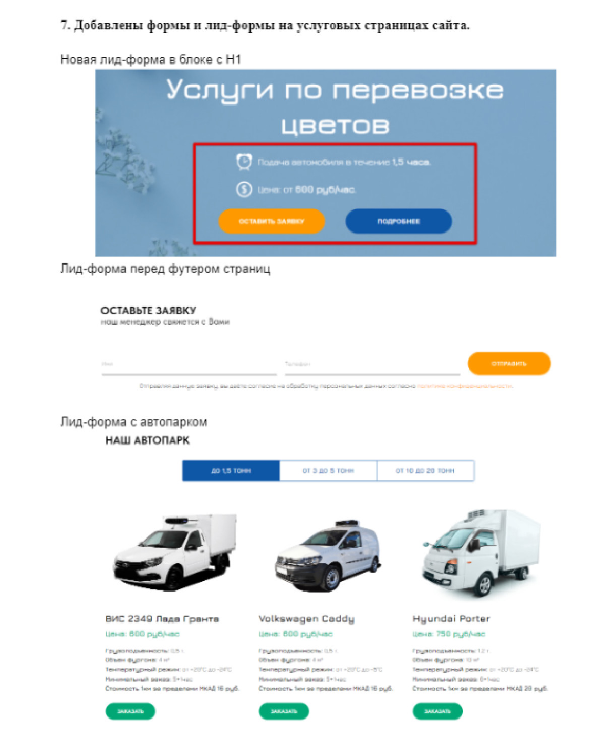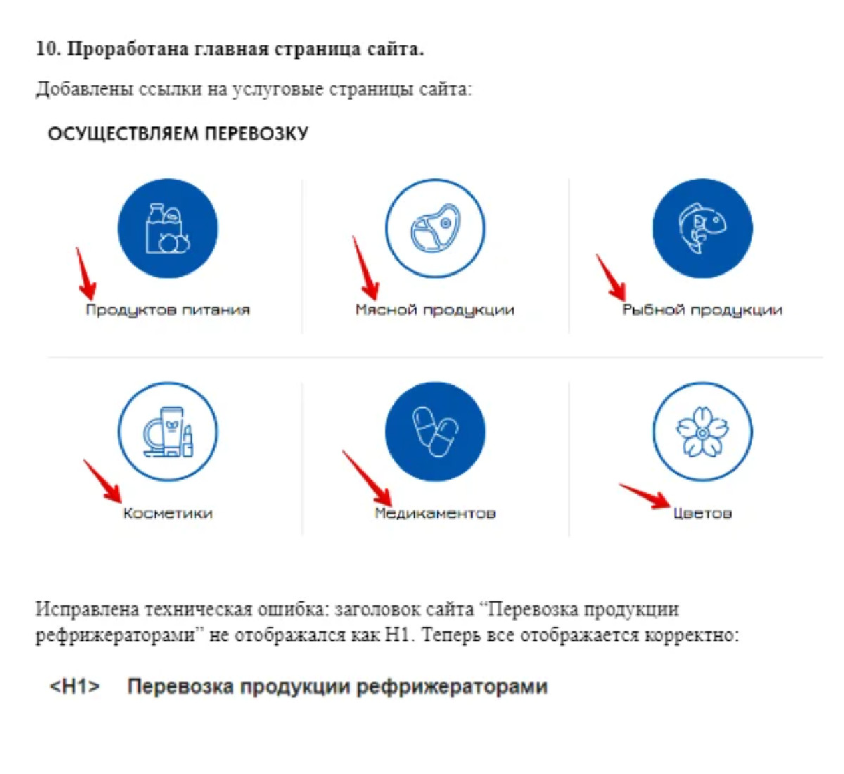 Параллельно доработкам мы создали стратегию продвижения на несколько месяцев. Выбрали стратегию продвижения по позициям. На основе анализа конкурентов и семантического ядра мы начали создавать посадочные страницы с видами перевозок, данные страницы были полностью проработаны: