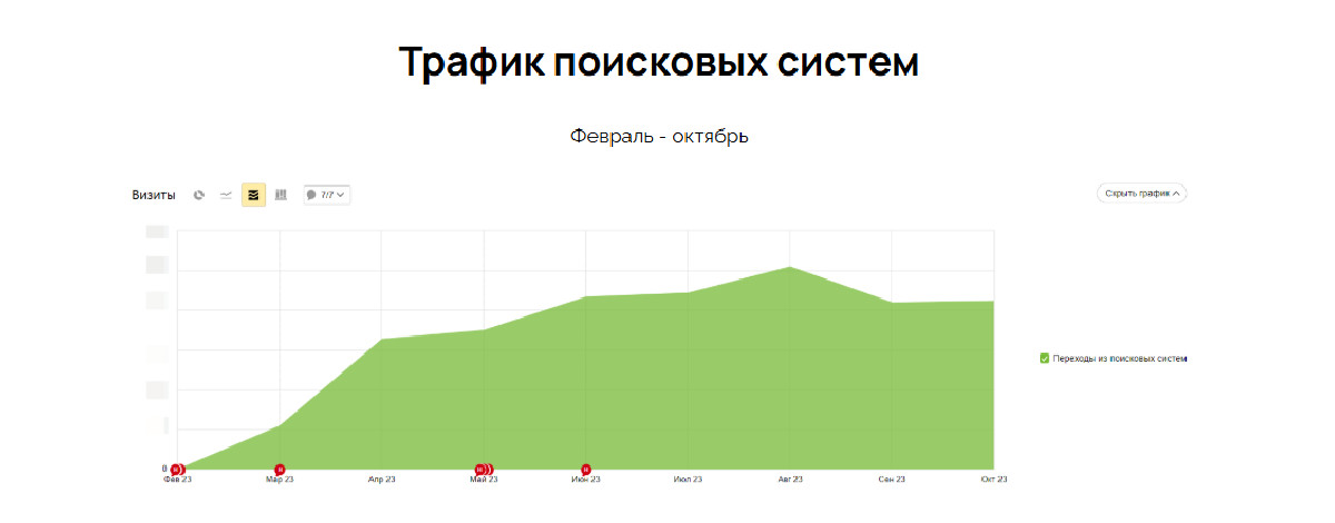 Для продвижения этого сайта были использованы универсальные подходы и методы для seo-продвижения, которые дают результат. Трафик увеличивается, позиции и видимость сайта растут — это и является результатом нашей работы. Работы на сайте продолжаются по всем канонам главных факторов ранжирования поисковых систем Яндекс и Google.