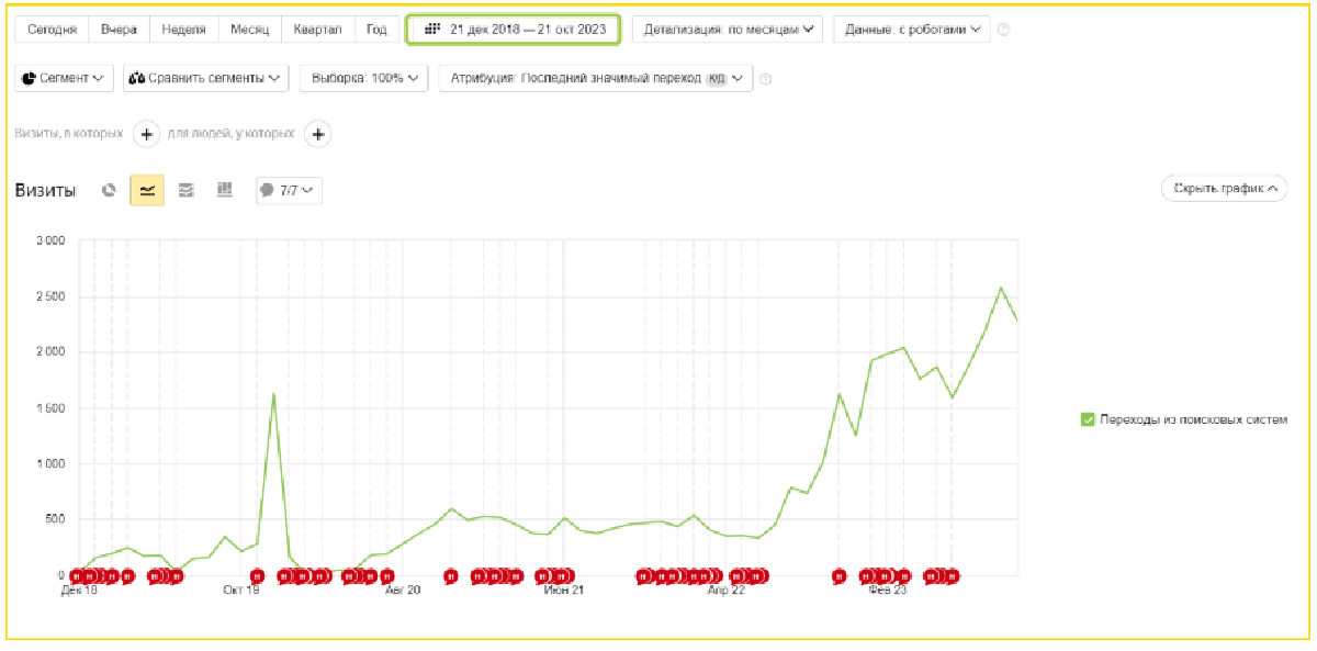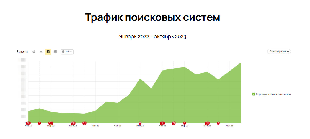 — За период нашей работы трафик из поисковых систем на сайт вырос с 50 до 2 500 визитов в месяц