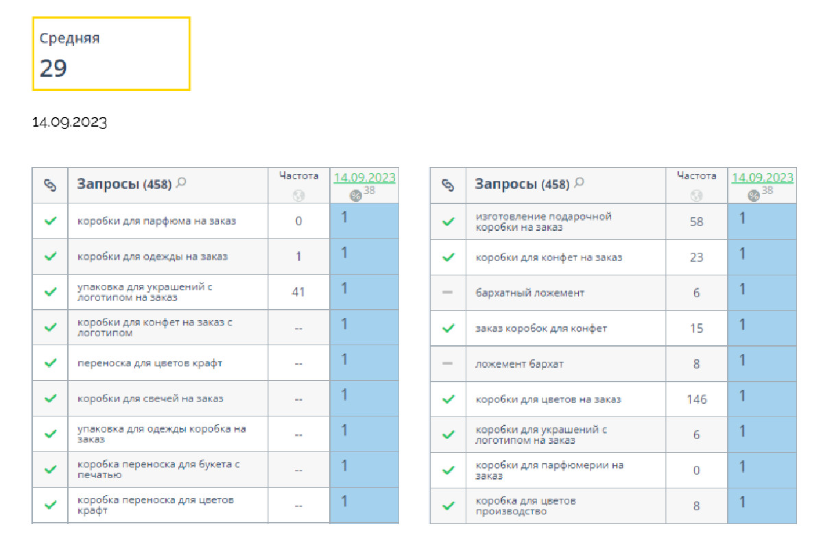 -Запрос «коробки для парфюма на заказ» - 1 позиция в Яндекс.