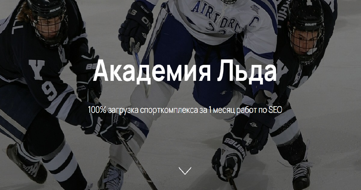 «Академия Льда» — это многофункциональный современный спортивный комплекс, в котором расположено несколько хоккейных площадок, бассейн, лед для фигурного катания, фитнес-зона, зал хореографии и 2 кафе здорового питания. Комплекс проводит занятия по всем вышеперечисленным направлениям, руководят которыми профессиональные тренеры. Главным пожеланием владельца было увеличение загруженности комплекса с помощью привлечения трафика из поисковиков.