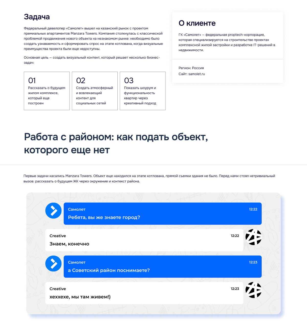 При выходе на казанский рынок перед Группой «Самолет» стояла задача сформировать узнаваемость бренда и спрос на ЖК Manzara Towers.