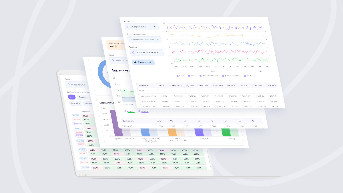 Для этого визуализировали сложные данные в графическом виде с помощью линейных и контрольных графиков, круговых и лучевых диаграмм, гистограмм, гистограмм с группировкой и составных гистограмм. Каждый новый вид графика отрисовывается отдельно перед интеграцией с базой данных. Сейчас дизайн-шаблонов уже более 20, и с каждой новой фичей от специалистов по машинному обучению их количество увеличивается.