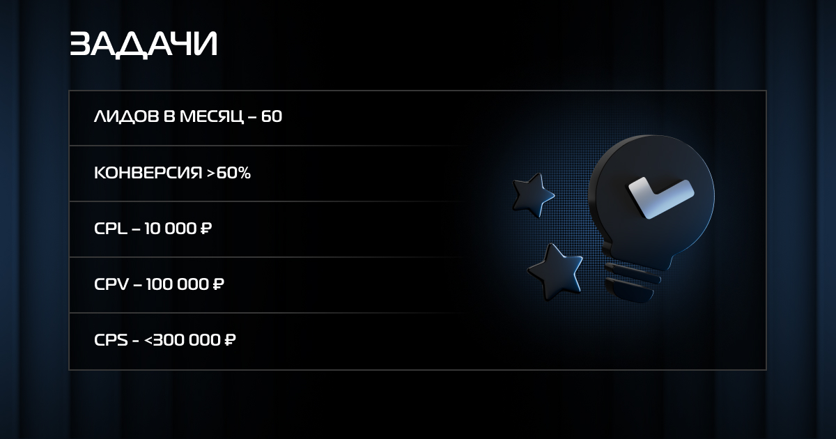 Основной целью проекта было повысить эффективность digital-маркетинга и сократить стоимость привлечения клиента. Перед нами стояли задачи: