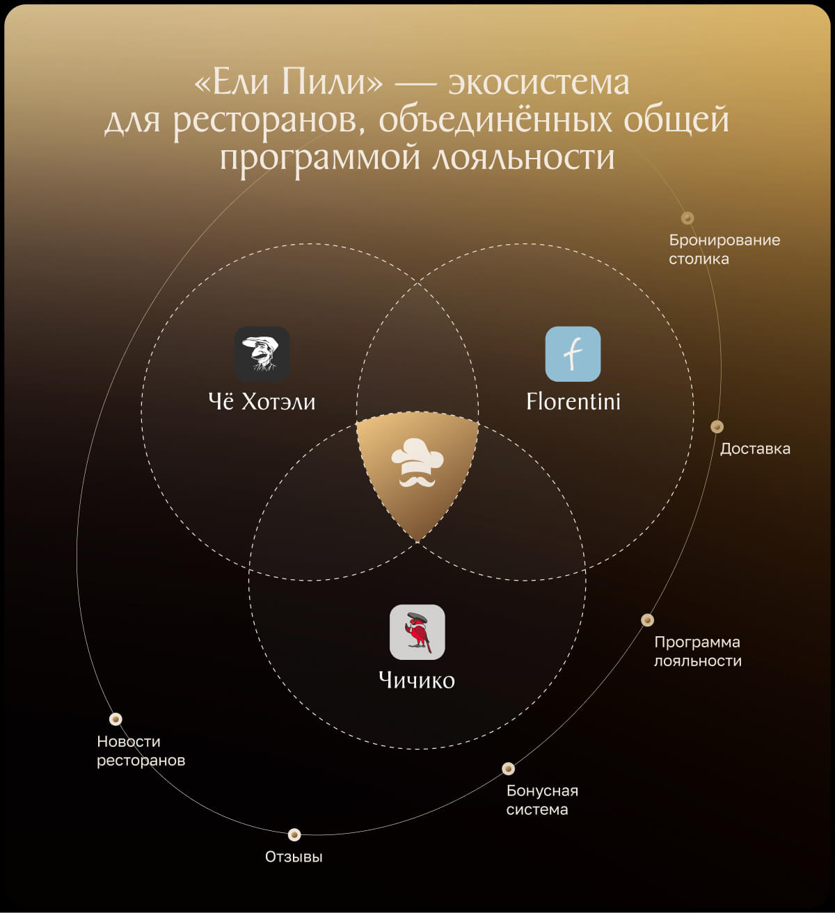 «Ели Пили» — несколько ресторанов, которые объединены единой программой лояльности и общим высоким подходом к сервису и классному гостевому опыту.