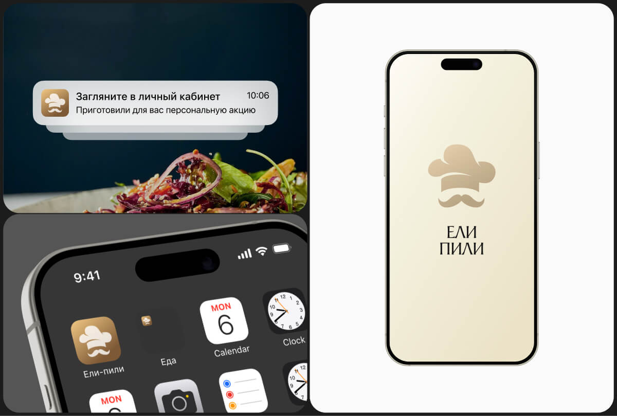 У «Ели Пили» появилось собственное мобильное приложение‑агрегатор с продуманным дизайном и понятной структурой экранов. Оно стало удобным инструментом для гостей и базой для дальнейшего развития экосистемы ресторанов.