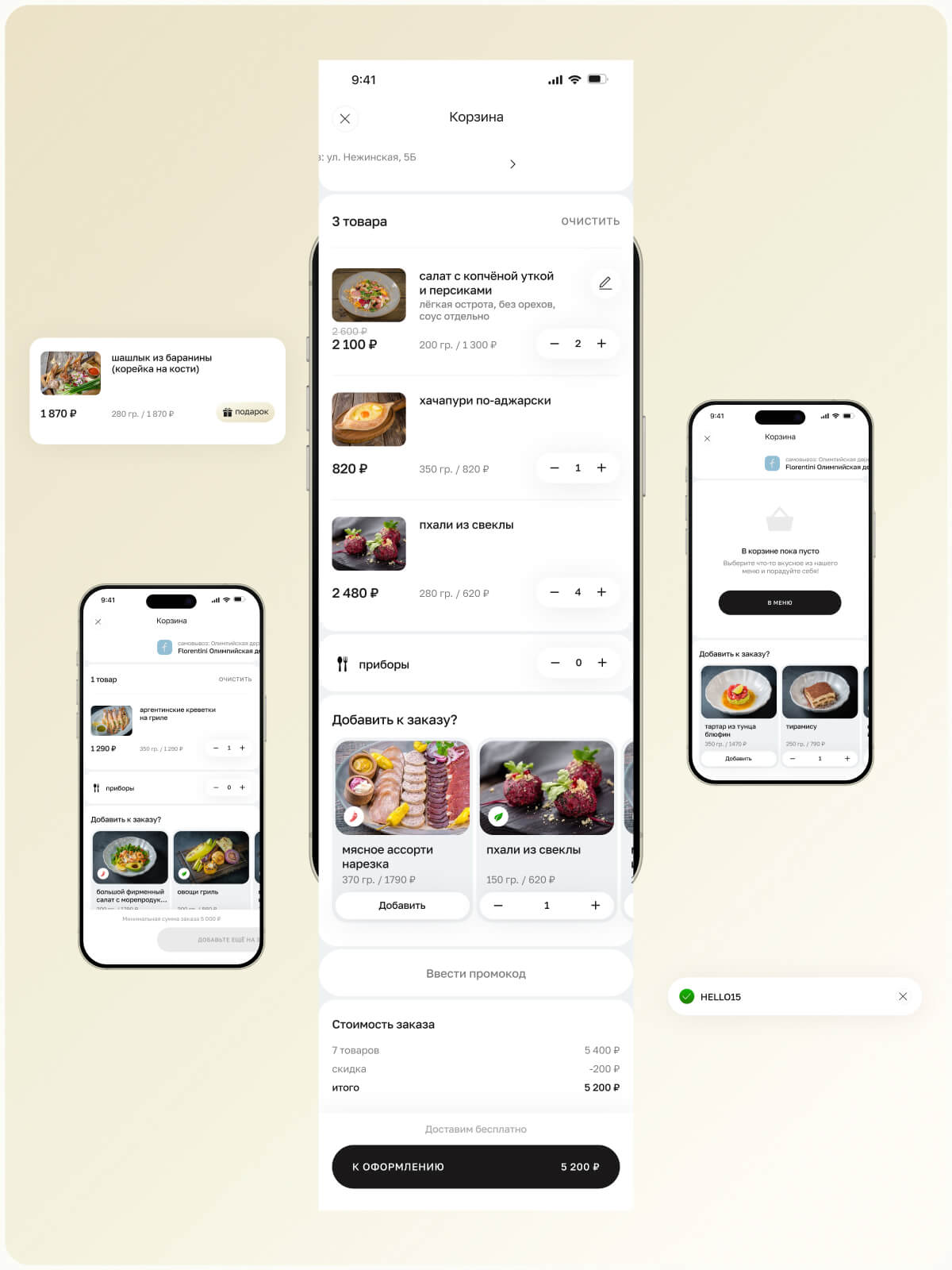 — Детально проработали процесс заказа еды, минимизировали ошибки и сделали интерфейс интуитивным.