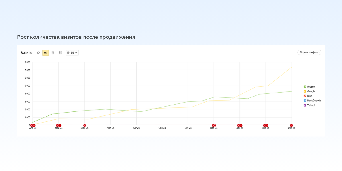Этот кейс показывает, что грамотное SEO — это инвестиция в долгосрочный результат. Даже в конкурентной нише можно выстроить эффективное присутствие в поиске, повысить доверие пользователей и обеспечить бизнесу стабильный рост без постоянного увеличения рекламных бюджетов.