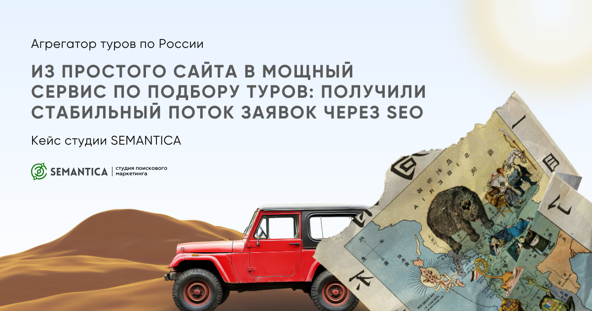 Рассказываем, как с помощью грамотного SEO-продвижения мы помогли онлайн-сервису туров по России стать заметнее в поиске, увеличить поток заявок и перестать зависеть от рекламы.