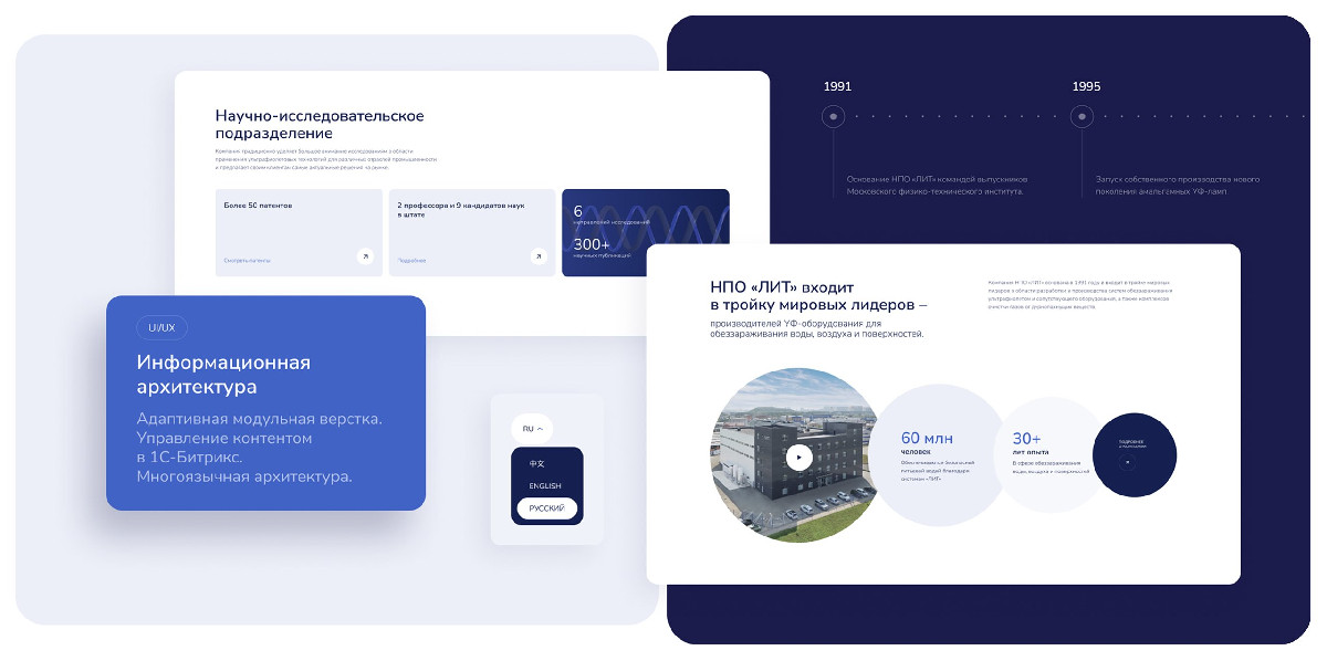 Современный корпоративный сайт для мирового лидера УФ-технологий НПО «ЛИТ»