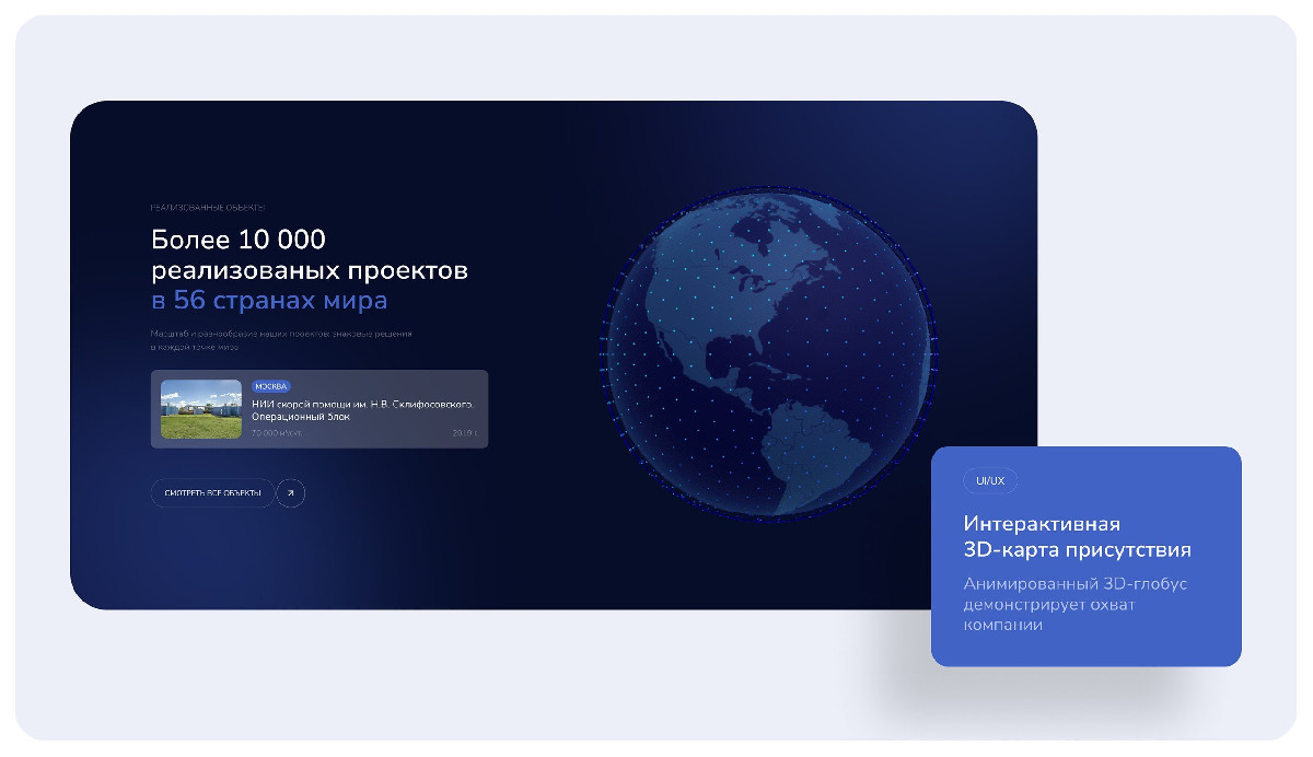- Сайт выполнен в современном стиле, сочетающем технологичность и минимализм