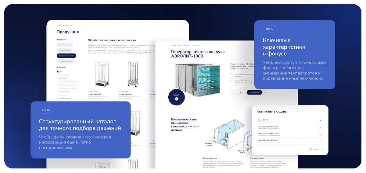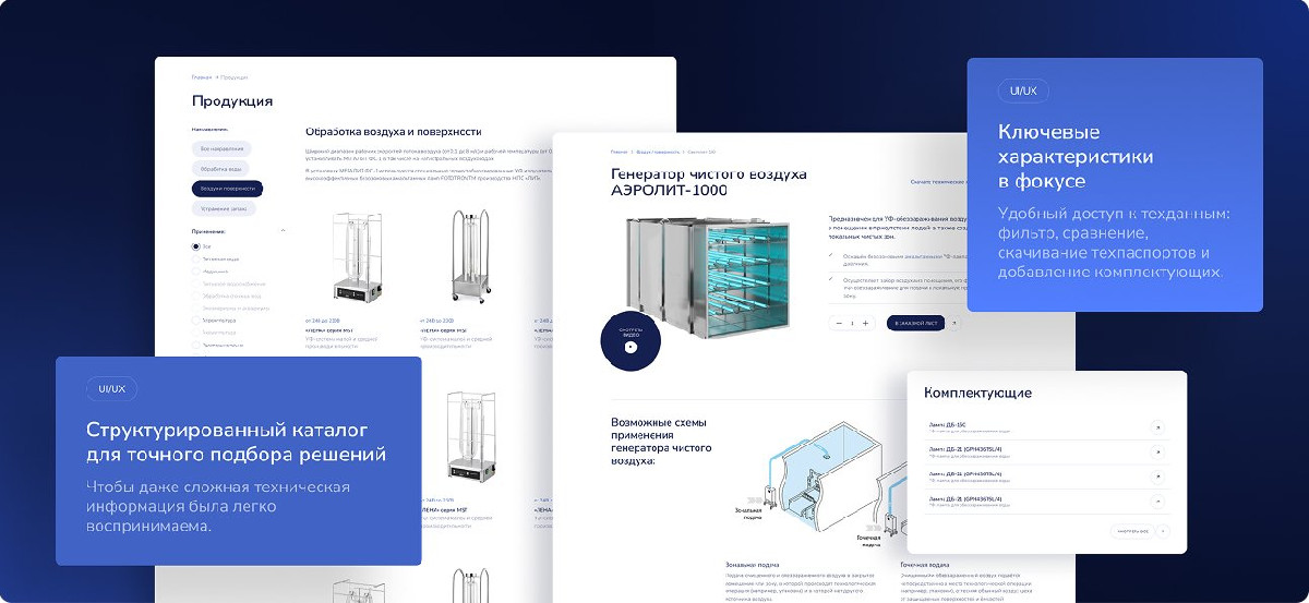 Разработали корпоративный сайт для производителя УФ-оборудования с каталогом продукции, e-commerce модулем для заказа комплектующих, базой документов и англоязычной версией. Сайт стал полноценным цифровым представительством компании.