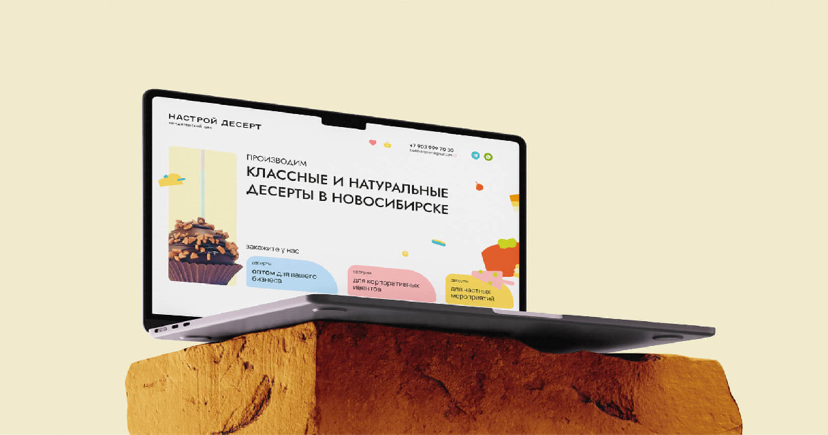 - Разработали сайт, который сохранил душевность бренда, но представил кондитерский цех «Настрой десерт» как самостоятельное и профессиональное производство;