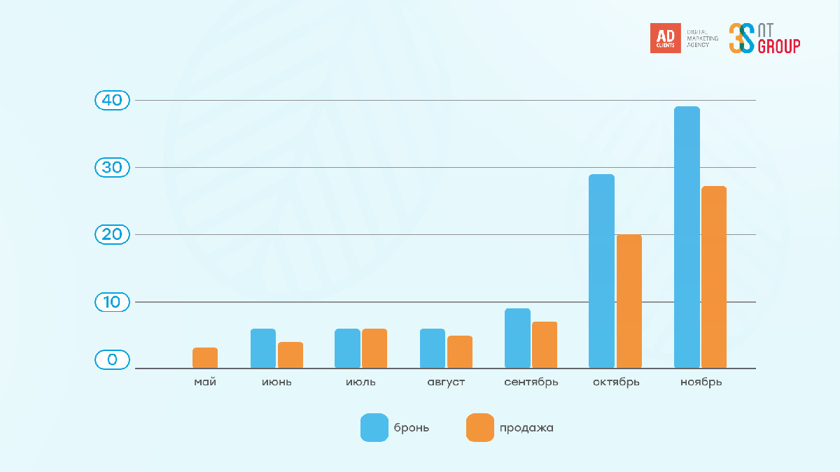 - +25% — рост конверсии из целевых заявок в бронь к октябрю.