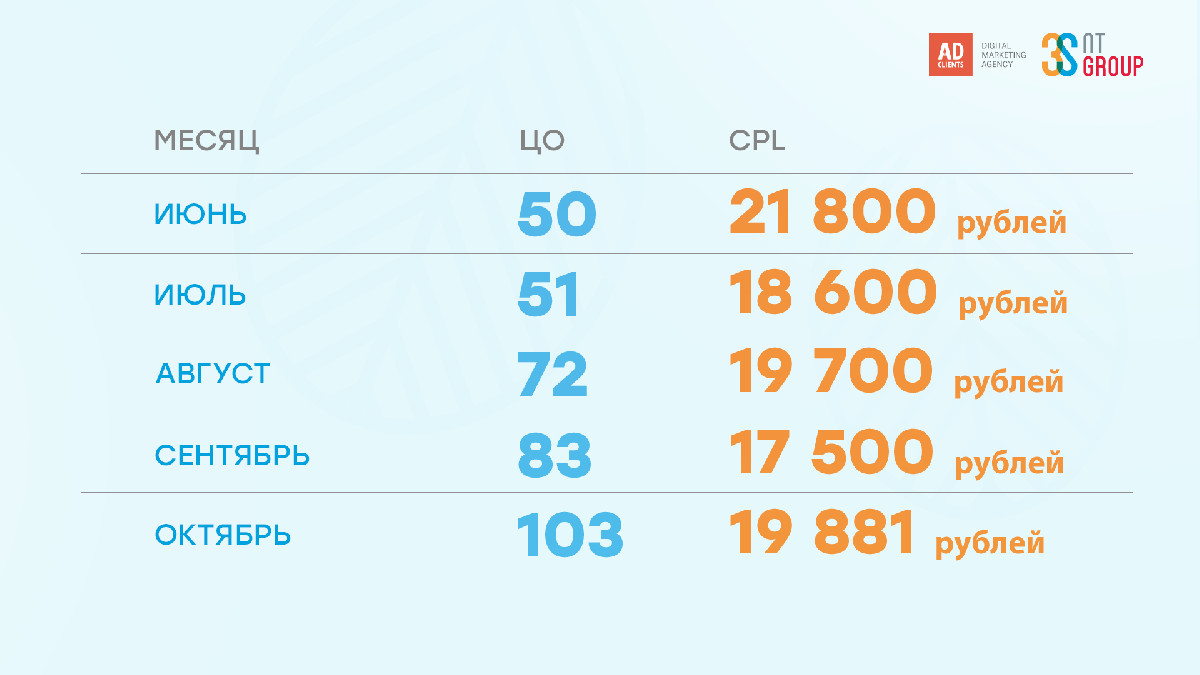 - Количество целевых обращений выросло в 2 раза — с 50 до 103 в месяц.