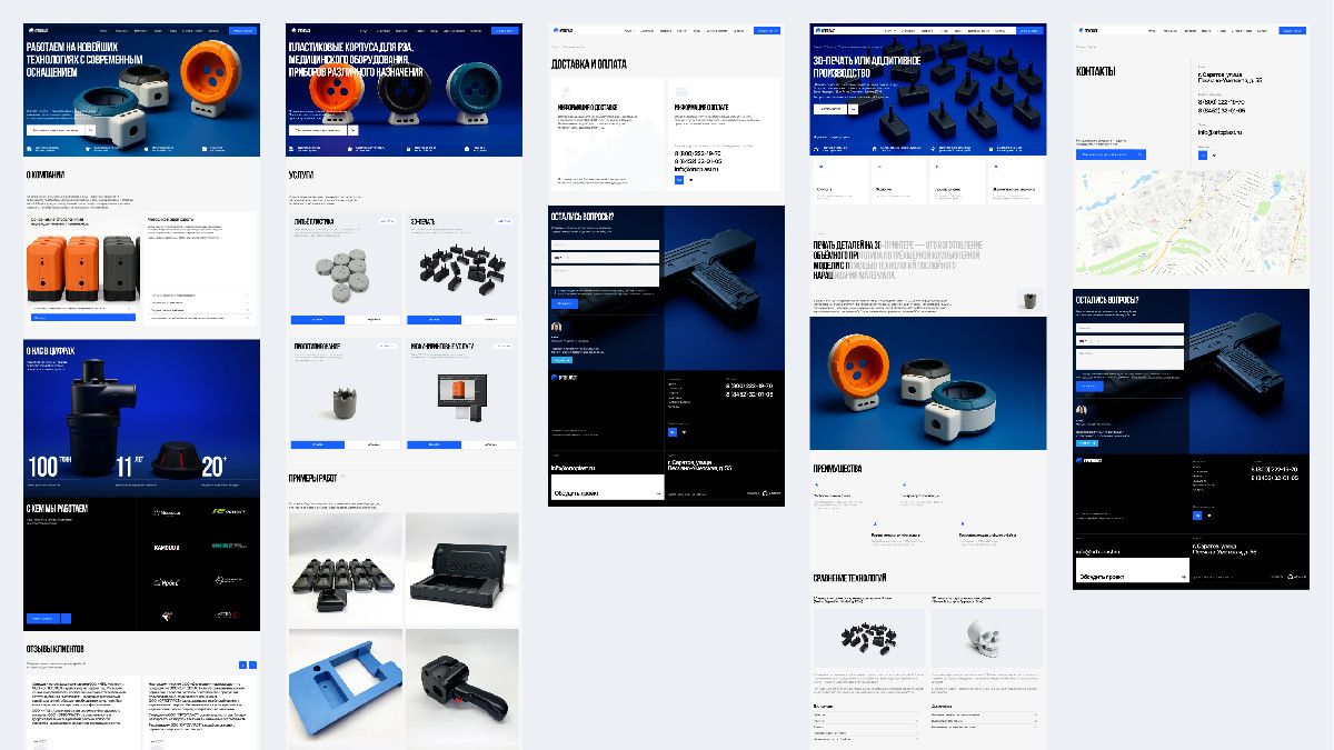 На основе проведенной аналитики был полностью переработана визуальная концепция бренда и пересобрана структура сайта: акцент сделан на компетенциях, видах работ, технологическом процессе и портфолио изделий. Создан новый логотип и фирменный стиль, основанные на идее модульности, технологичности и чистых элементах дизайна. Разработаны система иконок, сетка, цветовая палитра и собственный стиль фотографий с применением ИИ, чтобы подчеркнуть инженерный подход и современность компании. С нуля разработана концепция дизайна и отрисованы все страницы сайта, включая адаптивные версии, с особым вниманием к демонстрации процессов и кейсов, чтобы пользователь видел не только услугу, но и процесс её выполнения и результат. На финальном этапе сайт собран на Tilda, настроена техническая часть, оптимизирована загрузка и адаптивность, подготовлена базовая SEO-структура. Сайт дополнен формами заявок, удобной навигацией и понятными сценариями переходов.