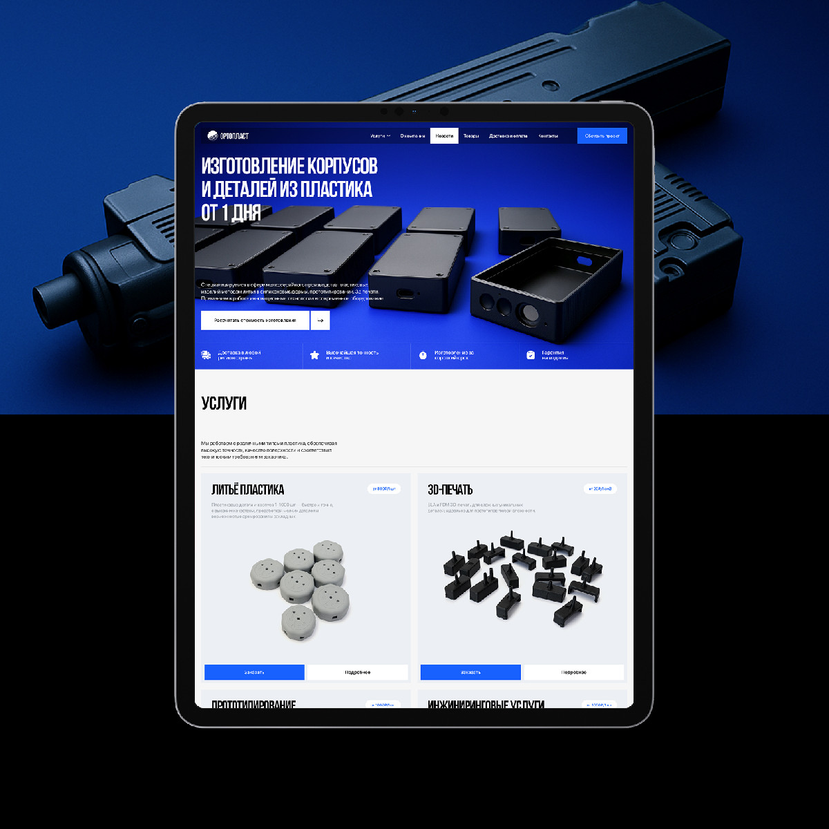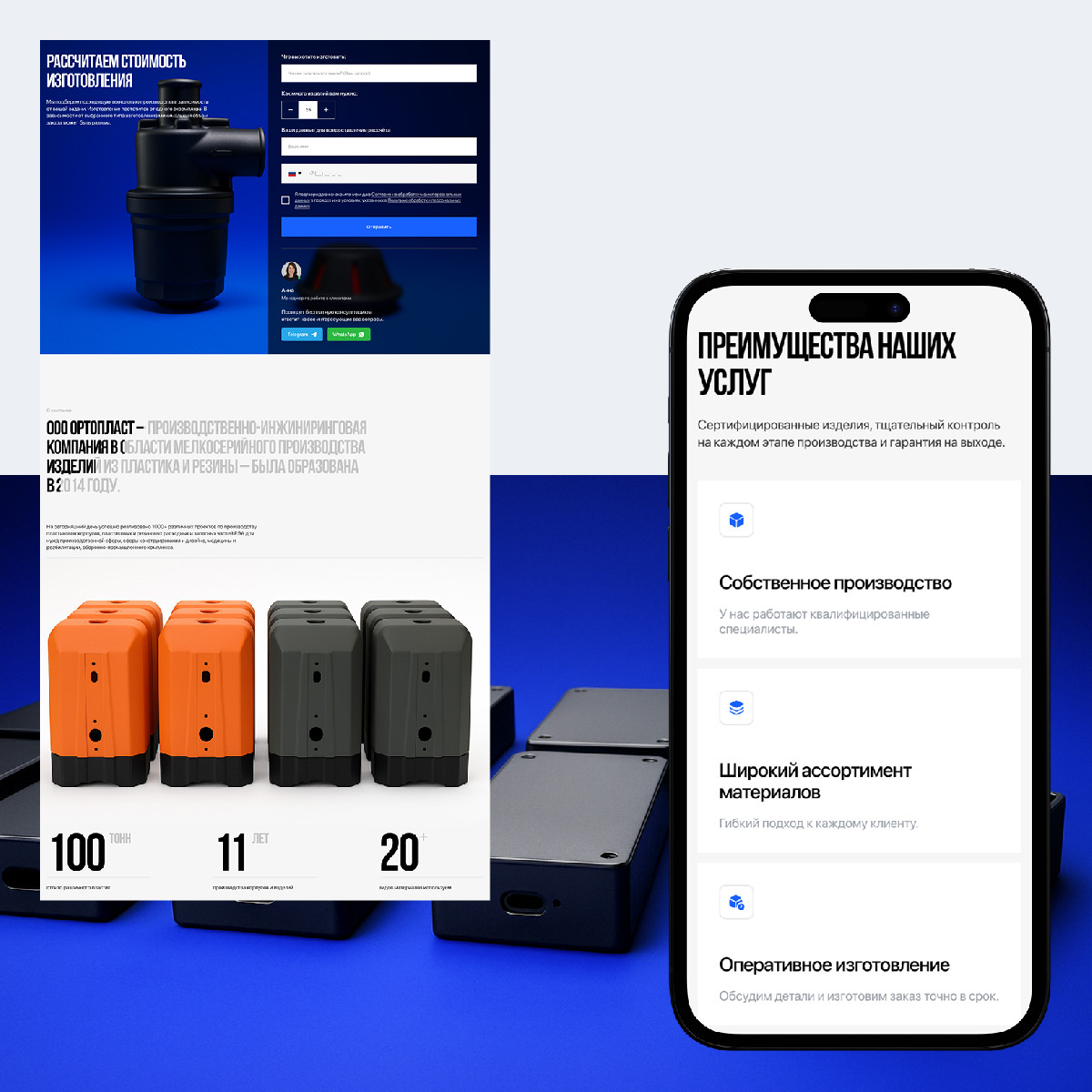 К нам обратился руководитель отдела маркетинга производственно-инжиниринговой компании Ортопласт с задачей: обновить фирменный стиль и создать современный сайт с отдельными страницами под каждое направление компании. Важно было сделать услуги удобными для поиска и фильтрации, обеспечить простой и понятный функционал для пользователей и управления проектом. Цель — выделить бренд среди конкурентов, сформировать современный имидж и привлекать крупных клиентов, показывая технологичность, точность и профессионализм компании.
