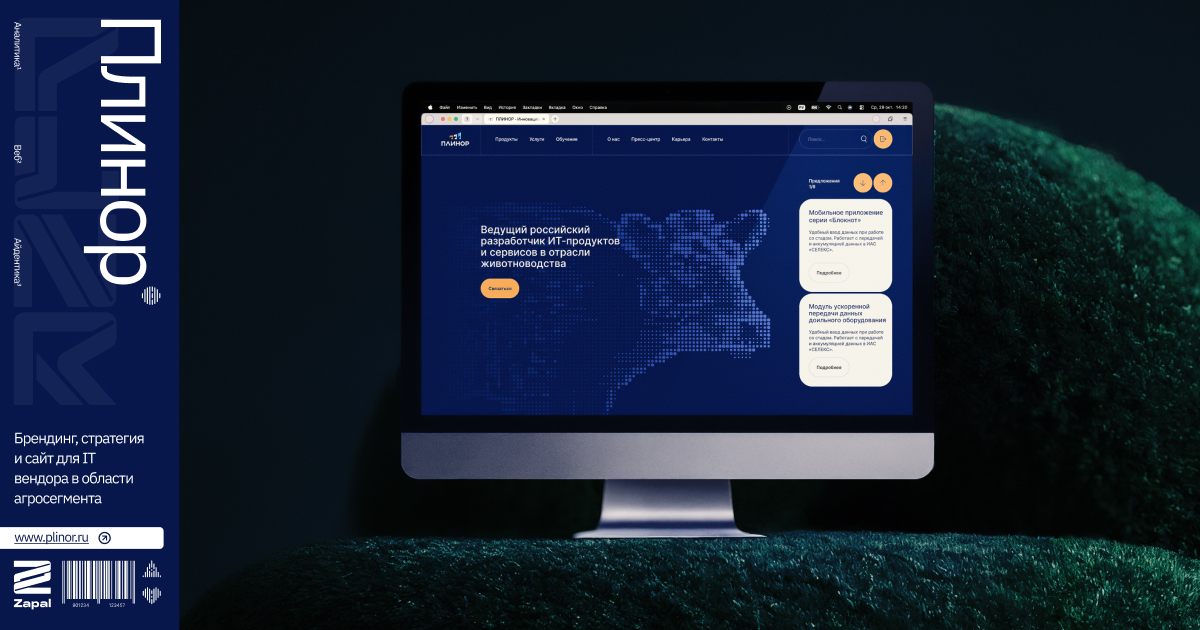 Zapal провел аудит и комплексное исследование бренда IT-лидера в сфере животноводства — компании «ПЛИНОР». На основе аналитики мы разработали новый брендинг, сайт и помогли вывести на рынок обновлённые IT-продукты для сельского хозяйства.