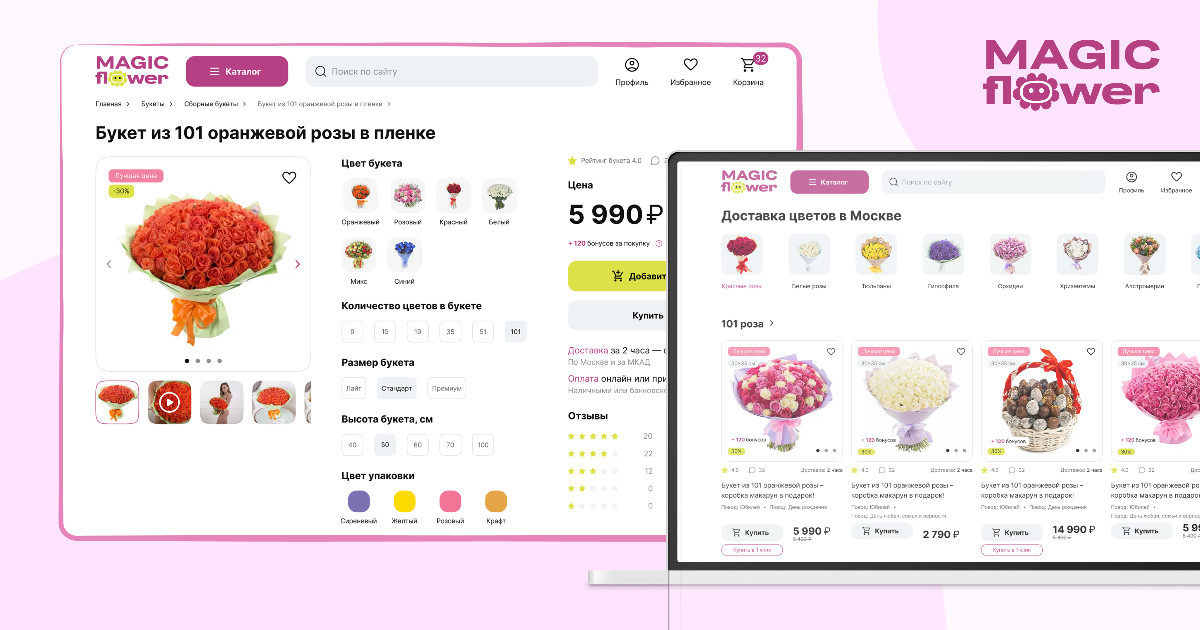 Magic Flower — интернет-магазин по доставке цветов, работающий в Москве и Санкт-Петербурге. Ранее Magic Flower обращались к нам за техническим сопровождением сайта и разработкой мобильного приложения, а в этот раз пришли с новыми задачами — доработкой и полным сопровождением сайта.