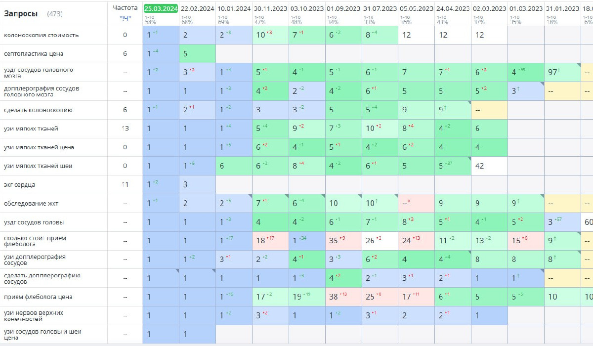 С учётом сверхвысокой конкуренции в медицинской нише и ограниченного рекламного бюджета стратегия была построена на работе с точечными, высококонверсионными запросами.