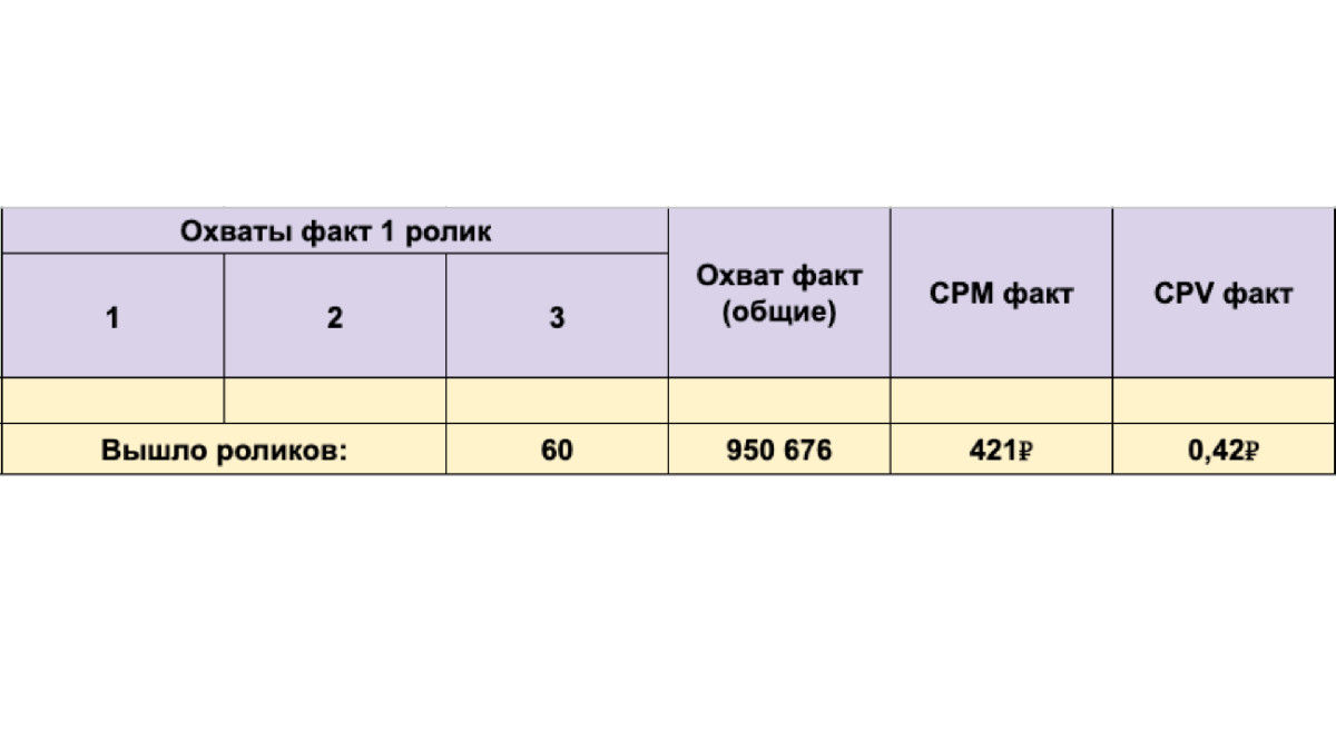 - достичь охвата в 800 тыс., а стоимость просмотра — в 50 копеек.