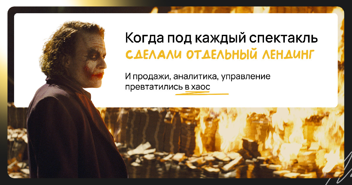 Клиент создавал под каждый спектакль отдельную посадочную, но с ростом географии и количества постановок система продаж превратилась в бардак